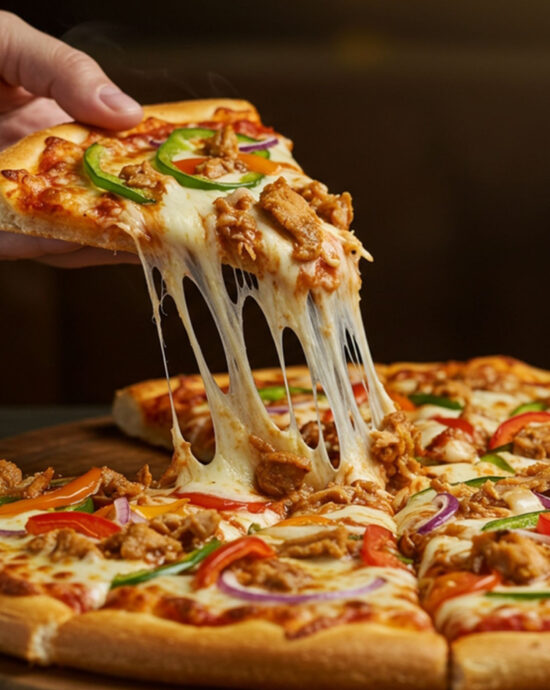 Make a delicious, cheesy Chicken Tikka Pizza at home using Golden Fresh Marinated Chicken Tikka Breast, paired with fresh toppings, DAYO Shredded Cheese, and Golden Fresh 11-Inch Pizza Base. Quick, flavorful, and perfect for family meals.