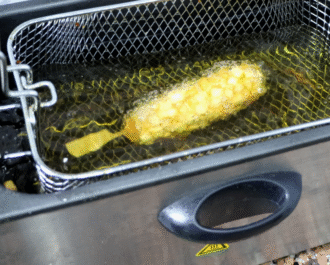 - Fry the Golden Fresh Cheesy Chicken Corn Dogs